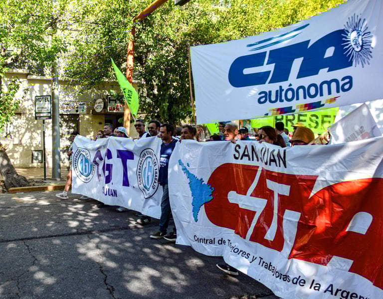 La reacción fue inmediata. Desde la sede de la CGT marcharon en conjunto las tres centrales sindicales —CGT, CTA de los Trabajadores y CTA Autónoma— junto a gremios y organizaciones sociales. En San Juan, la movilización reunió a múltiples sectores que colmaron la Plaza 25 de Mayo entre banderas, consignas y la lectura de un documento que sintetizó el rechazo a la reforma.