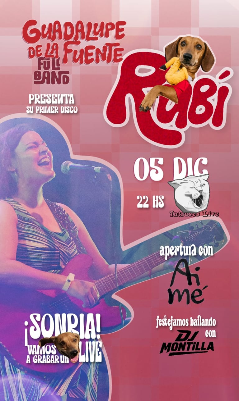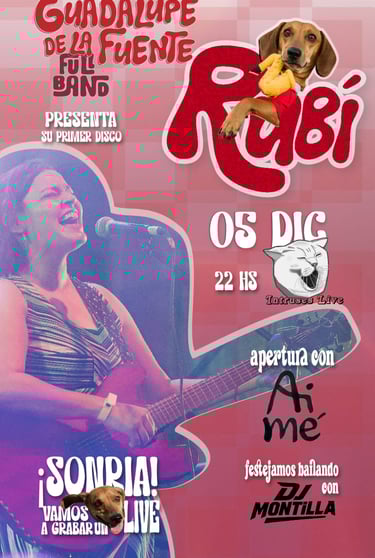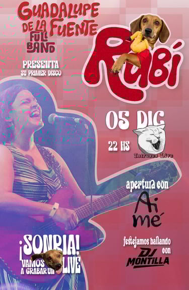 Guadalupe va a presentar Rubí, su primer disco. Se está preparando una noche especial y le encantaría que seas parte. Van a estar bailando con el gran DJ Montilla, y la encargada de abrir la noche en el escenario será Aimé, con sus bellas canciones que llegan al corazón.